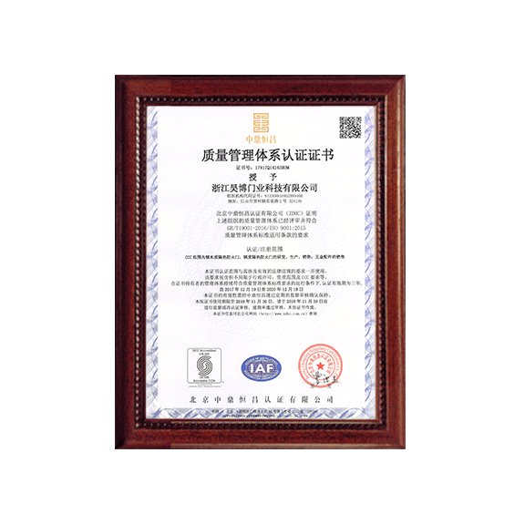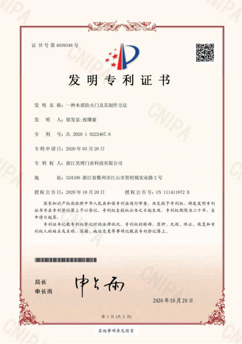 公司一直以來(lái)嚴(yán)格執(zhí)行ISO9001質(zhì)量體系和ISO14001環(huán)境管理體系標(biāo)準(zhǔn),建立了完備的科研、開(kāi)發(fā)、生產(chǎn)、銷售服務(wù)體系。公司是浙江省門(mén)業(yè)協(xié)會(huì)會(huì)員單位,江山門(mén)業(yè)協(xié)會(huì)理事單位,中國(guó)木材與木制品流通協(xié)會(huì)會(huì)員單位,江山市消防協(xié)會(huì)副會(huì)長(zhǎng)單位。